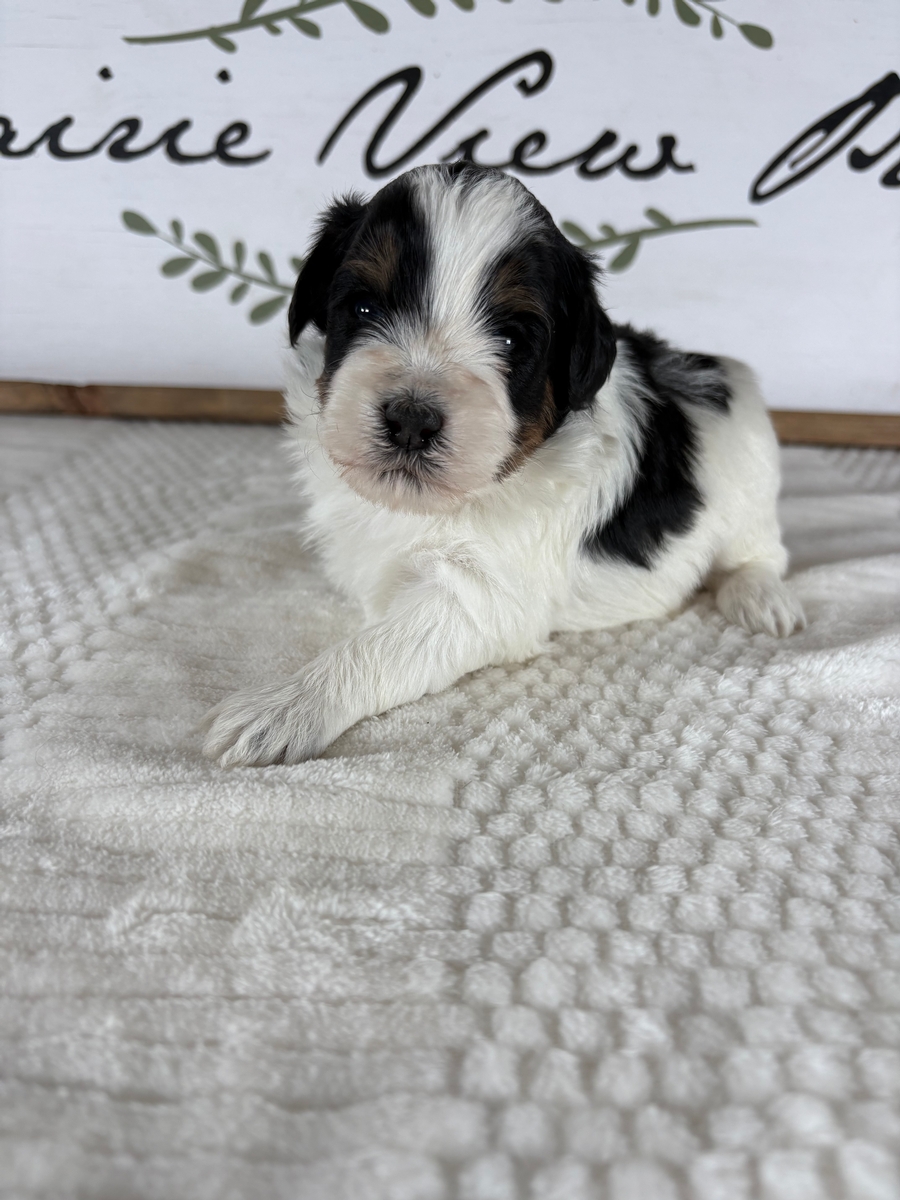Pups have arrived for Ash & Iceman! The mother, Ash, is a good natured attentive F1 Mini Bernedoodle that weighs 25 lbs. Iceman is a friendly and playful blue merle tri 11lb miniature poodle. Parents are DNA health tested. Please contact us for current pricing. If you would like to reserve a pup we ask for a $200 deposit. Families are welcome to visit in person for selection is able! We do have air transportation options available for families from farther distances. We have pups coast to coast! Deposits can be made sent via Paypal to justin@prairieviewpups.com button or with Venmo username Justin-Kooima.
