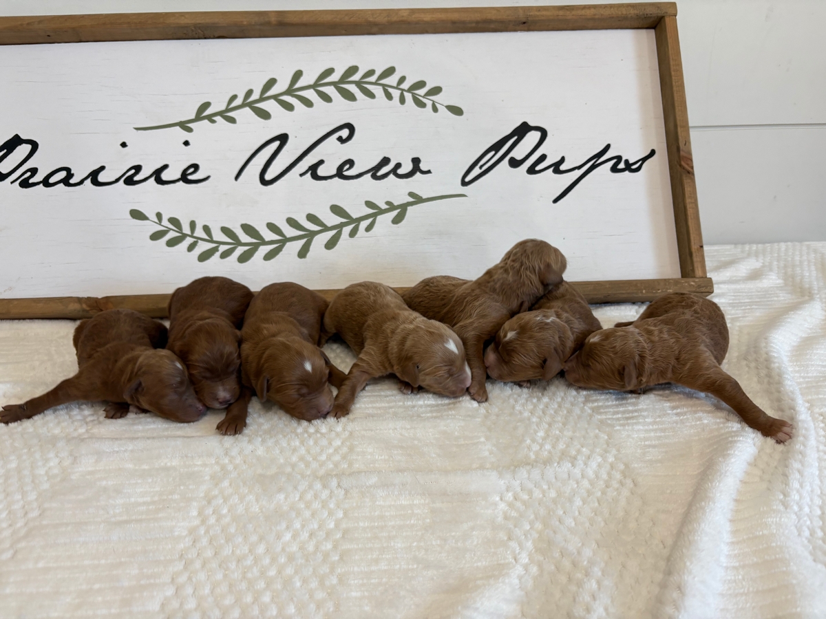 Pups have arrived for Shadow & Cooper! There are 3 females and 7 males Shadow is a 55lb Golden Retriever with a playful and friendly personality. Cooper is a confident and friendly dark red miniature poodle that weighs 14lbs. Parents are DNA health tested. Puppies will be 25-35lbs when mature! Please contact us for current pricing! When the pups are 5 weeks old the selection of specific puppies will begin. Families are welcome to visit in person for selection is able! We do have air transportation options available for families from farther distances. We have placed pups coast to coast! You can use either Paypal or Venmo to make your $200 deposit and reserve a pup!