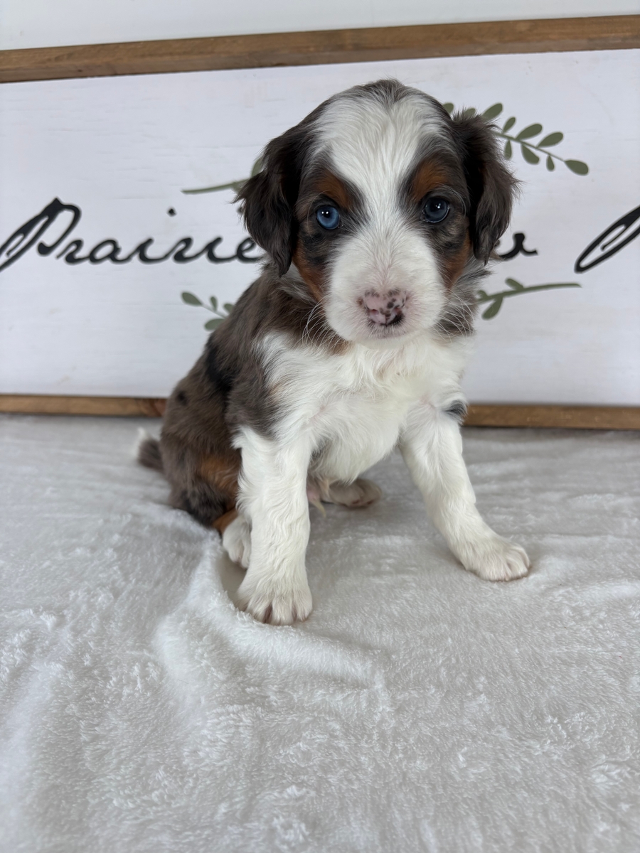 Pups have arrived for Story & Jester! The mother, Story, is a an outgoing and sweet Australian Shepherd that weighs 40 lbs. Jester is a friendly and playful 12lb red and white abstract miniature poodle. Parents are DNA health tested. Please contact us for current pricing. If you would like to reserve a pup we ask for a $200 deposit. Families are welcome to visit in person for selection is able! We do have air transportation options available for families from farther distances. We have pups coast to coast! Deposits can be made sent via Paypal to justin@prairieviewpups.com button or with Venmo username Justin-Kooima.